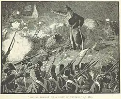 Craufurd had "a severe look and a scowling eye", wrote Harris.[11] William Napier thought the brigadier "very attentive to the men".[12] But "willfulness and folly" was treated very severely by lashings.[13] Unusually for so harsh a disciplinarian, Craufurd was admired and trusted by his men, and Harris had no doubt about his role in saving his command: