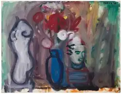 De Niro had a series of solo exhibitions in the 1950s at the Charles Egan Gallery in New York, which exhibited the work of Willem de Kooning and other early abstract expressionist artists. Critics praised DeNiro's compositions filled with improvised areas of vibrant color that gave way to loosely painted still lifes and curvaceous nudes. By the mid-1950s, De Niro was regularly included in important group exhibitions such as the Whitney Annual, the Stable Annual, and the Jewish Museum. He was awarded a Longview Foundation award in 1958.