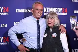 Robert F. Kennedy Jr. announced his campaign for the 2024 United States presidential election on April 19, 2023.[10] An environmental lawyer,[11] writer, and member of the Kennedy family, he is known for advocating anti-vaccine misinformation[12][13][14] and a variety of public health conspiracy theories.[15] He initially ran for the Democratic Party nomination, but announced on October 9, 2023, that he would run as an independent candidate.[16]