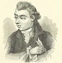 Fergusson involved himself in Edinburgh's social and artistic circles mixing with musicians, actors, artists and booksellers who were also publishers. His friend, the theatre-manager William Woods, regularly procured him free admission to theatre productions[6] and in mid-1769 Fergusson struck up a friendship with the Italian castrato singer Giusto Fernando Tenducci, who was touring with a production of Artaxerxes. Fergusson's literary debut came when Tenducci asked him to contribute Scots airs for the Edinburgh run of the opera. Fergusson supplied three, which were performed and published with the libretto.