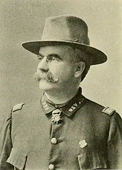 Smith was born in October 1854 and shortly after, immigrated for New Jersey. He enlisted in the New Jersey National Guard on 1877 and was promoted to colonel in 1897.[1] Upon the outbreak of the Spanish–American War, Smith enrolled to become the Colonel of the 4th New Jersey Volunteer Infantry Regiment under Adjutant General William Scudder Stryker on June 30, 1898.[2][3] The regiment was mustered at Sea Girt on July 18, 1898, by Captain W. C. Buttler but the regiment saw no active service during the war and Smith was mustered out on November 3, 1898, at Camp George Meade.[2] After the war, Smith would continue to serve in the New Jersey National Guard as a colonel until his retirement on May 17, 1906, with the rank of Brevet Brigadier General.[4][5] During the nomination of his Brigadier General status by the New Jersey Legislature, Smith moved to Washington, D.C., to secure his position.[6]