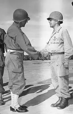![]() Colonel Soule (right) is awarded the Distinguished Service Cross, Luzon, Philippines, 1945 | |
