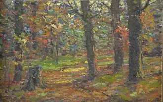 He was a contributing member of the Arts Club of Montreal.[4] He became a member at its inception in 1912.[1] While known especially for the area of the Thousand Islands,[7] Lindsay also traveled extensively, painting in Maine, Florida, and Ireland.[8]