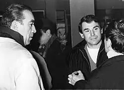 Robert Hossein's grandfather was born in Iran.[4] His father was André Hossein, a composer of Iranian Azerbaijani origin,[5][6][7] and his mother was Anna Mincovschi, a Jewish comedy actress from Soroca (Bessarabia).[8][9][10][11] He was married three times: first to Marina Vlady (then Marina Poliakoff; on 23 December 1955, they had two sons, Pierre and Igor), later on 7 June 1962, to Caroline Eliacheff, daughter of Françoise Giroud (they had a son, Nicholas, who became rabbi Aaron Eliacheff).[8] She was fifteen at the time and he was 34. In 1973, he dated for a short while Michèle Watrin, before she died the following year in a car accident. In 1976, he married actress Candice Patou, with whom he had a son.
