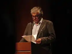 Robert Houle RCA (born 1947) is a Saulteaux First Nations Canadian artist, curator, critic,[1] and educator. Houle has had an active curatorial and artistic practice since the mid-1970s. He played an important role in bridging the gap between contemporary First Nations artists and the broader Canadian art scene through his writing and involvement in early important high-profile exhibitions such as Land, Spirit, Power: First Nations at the National Gallery of Canada (Ottawa, 1992). As an artist, Houle has shown both nationally and internationally. He is predominantly a painter working in the tradition of Abstraction, yet he has also embraced a pop sensibility by incorporating everyday images and text into his works. His work addresses lingering aspects of colonialism and their effects on First Nation peoples. Houle often appropriates historical photographs and texts, repurposing and combining them with Anishnaabe language and traditionally used materials such as porcupine quills within his works.