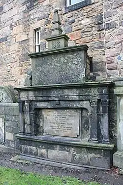 He died at home, Hope Park House,[5] east of the Meadows in Edinburgh, where he had lived since 1810, and is buried in Greyfriars Kirkyard in central Edinburgh against the eastern wall. His stone is added to a much earlier (1610) ornate stone monument. His son, David Wardrobe Kerr (1796–1815) lies with him.