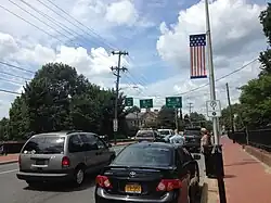 In 1940, plans were made to eliminate the grade crossing with the railroad junction in Elsmere by replacing it with a bridge over the tracks along with a new alignment for DE 2 between the end of the divided highway in Elsmere and Union and Lincoln streets in Wilmington.[16] Due to World War II and steel shortages, construction of the bridge was delayed until after the war.[17] In December 1949, the bridge carrying the route over the Reading Railroad and the Baltimore and Ohio Railroad in Elsmere was opened to traffic, with final work on the bridge finished in 1950.[18]