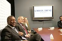 By January 2009, Ion Media had another subchannel network, Urban TV, in the works with him targeted to black Americans.[18] Axiom Bank N.A. Maitland, Florida, was founded by Robert Johnson, who also founded the Black Entertainment Network (BET). As of 2013, Johnson was a member of the board of directors for RLJ Lodging Trust, RLJ Entertainment, Inc., KB Home, Lowe's Companies, Inc., Strayer Education, Think Finance, Inc., NBA Board of Governors, The Business Council, and the Smithsonian Institution's National Museum of African American History and Culture.[16][19][20][21] Johnson has also served as a member of the board of directors for several other companies and organizations, including US Airways, Hilton Hotels, General Mills, the United Negro College Fund, and Deutsche Bank's Americas Advisory Board.[16][22][23][24]