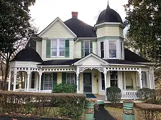 The Robert Lafayette Cooper House is a historic house at 109 Campbell Street in Murphy, North Carolina. The two story wood-frame house was built 1889–91, and is one of the finest Queen Anne Victorian houses in Cherokee County. The house is roughly rectangular in mass, with a number of gable sections projecting from its hipped roof. It has two octagonal cupolas, and an elaborately decorated porch which includes an octagonal corner section. The house was built by Robert Lafayette Cooper, a successful local lawyer, as a wedding present for his wife.[2]