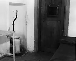 On 24 October, three days after receiving the indictment, Ley strangled himself to death in his prison cell using a noose made by tearing a towel into strips, fastened to the toilet pipe.[31] The Chief Medical Office of the Military Tribunal, Lt. Col Rene Juchli, made a report to Major General Donovan regarding the effect the suicide had on other prisoners, stating "It appears to be the unanimous consensus of opinion among the witnesses that no bereavement was indicated over the self-inflicted death of the late Dr. Ley."[32]