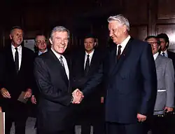 Earlier, Mosbacher in 1970 headed the fund-raising effort for George H. W. Bush in his losing Senate campaign against Lloyd M. Bentsen and again in Bush's presidential campaigns in 1980 and 1988. In 1992, he would serve as the general chairman of Bush's re-election campaign.[14][15]