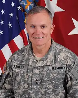 Robert Paul Ashley Jr. is a retired lieutenant general in the United States Army who served as the Director of the Defense Intelligence Agency from 2017 to 2020. He previously served as Deputy Chief of Staff of the Army G-2.[1] He received a commission through ROTC as a 1984 graduate of Appalachian State University.[2] He retired from active duty on October 1, 2020.[3] He currently serves as Senior Advisor to the Chairman of Arcanum, a global strategic intelligence company.[4] He is the son of a United States Air Force veteran of the Korean War who later lived in North Carolina and worked a sewing machine mechanic.[5] Ashley is a commissioner on the Afghanistan War Commission.[6]