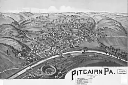 In 1894, the residents decided to form their own community. The village was incorporated as a borough and adopted Pitcairn as its name. On December 6, 1897, at the request of the Borough Council, the PRR changed the name of its depot from Walurba to Pitcairn.[16]