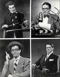 Among those who served as writers on Lewis's radio programs were playwright Neil Simon, author and dramatist Paddy Chayefsky, and radio comedy writer Goodman Ace.[15] Simon, Chayefsky, and Ace headed a CBS team of comedy writers that acted largely as "script doctors" for existing shows in need of fixing. Ace was frustrated over a CBS revamp of the show he assembled for Lewis, The Little Show: "I give them a good, tight, 15-minute comedy show," Ace told Time, "and what do they do? Expand it to half an hour and throw in an orchestra and an audience. Who the hell said a comedy show had to be half an hour, Marconi? Ida Cantor?" [16] [15]