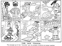 Severini later explained that as well as being a formal experiment in painting, the work reflected the "psychological relationship between the artist and the sitter".[7] In April 1913, he wrote to Marinetti, "I am Sée's guest, I am guzzling his food and sleeping in his house (the organisation of his house is immense, grand); but this state of affairs cannot go on and I have to cross the Channel as soon as possible", adding revealingly, "Watching the blonde Madame Sée grow old is a pleasure; she is becoming ugly and sick of men".[10]