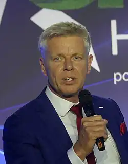 Roos later represented JA21 in a Netherlands seat in the EU Parliament.[1] He was vice-chair of the European Conservatives and Reformists Group.[1] In 2023, he participated in the second meeting of the Madrid Forum of the national conservative Spanish political party Vox in Lima, Peru.[4] He did not run for re-election in June 2024, and his term as MEP ended on 15 July 2024.[1][5]