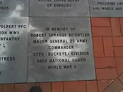 Following the training of the 37th, Beightler would lead them into battle in the Pacific theater of the war. The "Buckeye Division," as the 37th was called, entered the theater in 1942. The 37th were victorious in numerous battles, including victories at New Georgia, Bougainville, the Battle of Manila, and raced the 33rd Division to liberate Baguio City.[19] They would go on to liberate 1300 internees at the Bilibid Prison in Muntinlupa.