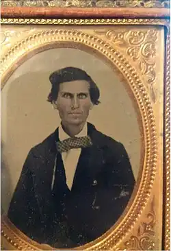 James was a noted revivalist. He was among the founders of William Jewell College in 1849. In April 1850, James left his family for California to visit his brother Drury Woodson James, who had already relocated to the state.[9] He also planned to prospect for gold and preach to the crowds of goldminers during the California gold rush. Shortly after arriving in California in August 1850, he contracted cholera and died on August 18, 1850, in the Hangtown Gold Camp, later known as Placerville. He was buried there in an unmarked grave. Probate records show that at his death he owned six slaves and was a commercial hemp farmer.