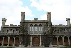 The rapid rise of Smirke was due to a combination of his great ability with significant political patronage.[13] He was a Tory at a time when this party was in the ascendant. His friends at the Royal Academy, such as Sir Thomas Lawrence, George Dance, Benjamin West and Joseph Farington, were able to introduce him to patrons such as: the 1st Marquess of Abercorn; the 1st Viscount Melville; Sir George Beaumont, 7th Baronet; the 4th Earl of Aberdeen; the 3rd Marquess of Hertford; the 3rd Earl Bathurst; John 'Mad Jack' Fuller; and the 2nd Earl of Lonsdale. These politicians and aristocrats ensured his rapid advancement and several were to commission buildings from Smirke themselves. Thomas Leverton Donaldson described Smirke as able to please "Men whom it was proverbially impossible to please".[14] His patron at Lowther Castle, the 1st Earl of Lonsdale, said he was "ingenious, modest and gentlemanly in his manners".[15]