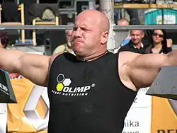 Robert Szczepański (born 1 June 1975) is a Polish boxer, powerlifter and strongman competitor. Prior to competing in strongman, Szczepański coached boxing and Powerlifting, and in 1993 he won a bronze medal in boxing at the Polish Junior Championships. Robert began competing in strongman in 2002. He has a wife, Magda, and a son Dorian (named after 6 time Mr. Olympia winner Dorian Yates).