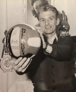 He earned a total of nine caps for Belgium between 1951 and 1956,[1][2] and participated at the 1954 FIFA World Cup.[3] Van Kerkhoven died in June 2017 at the age of 92. His death wasn't reported until more than two years later.[4]