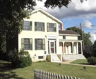 The Robert Vial House is a historic house located at 7425 S. Wolf Rd. in Burr Ridge, Illinois. Built in 1856, the house is the oldest in Burr Ridge and the only example of an early farmhouse in the community. The house was designed in the upright-and-wing form of the Greek Revival style and also features elements of the Italianate and Classical Revival styles. The two-story house has a front gable and a 1+1⁄2-story side wing. The house's main entrance is bordered by sidelights and a transom and framed by pilasters supporting a plain pediment. The front of the house has five six-over-six wood sash windows with wooden shutters. The wing has a front porch with a sloping overhang supported by columns. The house's main eave features ornamental Italianate brackets.[2]