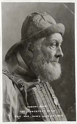 Robert William Hook (4 June 1828 – 28 June 1911) was a fisherman and innkeeper and the coxswain of the Royal National Lifeboat Institution (RNLI) Lowestoft lifeboat and with private companies from 1853 to 1883 and who has been credited with saving more than 600 lives in addition to two cats and a dog.[1][2] He was twice awarded the RNLI Silver Medal for gallantry.[3]