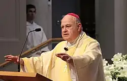 On May 8, 1990, Pope John Paul II appointed Muench as an auxiliary bishop of the Diocese of New Orleans and titular bishop of Mactaris.[1] He was consecrated on June 29, 1990, at Saint Louis, Cathedral in New Orleans by Archbishop Francis Schulte, with Hannan and then Bishop John Favalora serving as co-consecrators.[2] Muench selected as his episcopal motto, "Jesus Must Increase" John 3:30.[3]