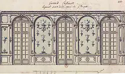 From 1708, Robert de Cotte was Premier architecte du Roi and director of the Académie royale d'architecture. He was in charge of the Bâtiments du Roi, which had been organized by Hardouin-Mansart into the prototype of all modern architectural offices, where the roles of director, comptroller, inspector, architect and draftsman were specialized, and the personalities involved submerged under the aegis of the Premier Architecte.[7] The last years of Louis XIV are not on the whole periods of intense activity at Versailles, where the single great enterprise, already in progress at de Cotte's accession, was the Chapel, completed in 1710; there the decorative designs were actually the work of Pierre Lepautre, whom Fiske Kimball characterized as the "father of the Rococo".[8]