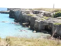 Grotta della Poesia (Poetry Cave) is one of the most well known natural rock formations inside the archaeological site. It's a natural pool that's recognized as one of the most beautiful natural pools in the world.[4] The name originates from a legend that tells the story of a Princess who liked to bathe in the waters of Grotta della Poesia. In turn, the beautiful princess has become the muse for countless poets in the Salento peninsula.[5]