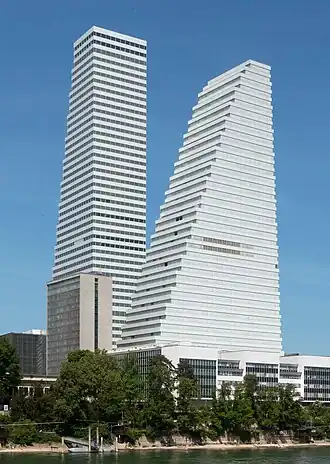 - ^ "Höchstes Gebäude der Schweiz - Neuer Roche-Turm überholt seinen «kleinen» Bruder". Schweizer Radio und Fernsehen (SRF) (in German). 2 September 2020. Retrieved 13 April 2021.