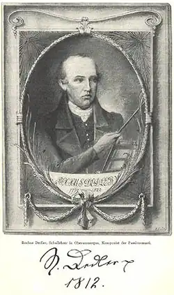 Rochus Dedler (15 January 1779 – 17 October 1822) was a German composer. He is best known as the author of a stage music for the version of the Oberammergau Passion Play by Father Othmar Weis.[1]