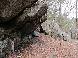The Rock House Reservation is a 196-acre (79 ha) open space preserve located in West Brookfield, Massachusetts. The property, acquired in 1993 by the land conservation non-profit organization The Trustees of Reservations, is named for a natural rock shelter once used as a winter camp by Native Americans.[1] Its location near two, long Native American footpaths suggests that it may also have been a trail camp and meeting place.
