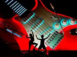 ![]() A large, red Fender Stratocaster on display outside the attraction in Florida | |