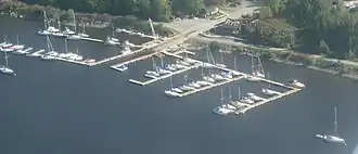 The Rockcliffe Yacht Club is a non-profit Yacht club based on the south shore of the Ottawa River near the Ottawa/Rockcliffe Airport in Ottawa, Ontario, Canada north of the Canada Aviation Museum. It is a 100-member “private co-op” style club. The club originally was part of CFB Rockcliffe but changed to a private club in 1984. The club is centred on a concrete ramp originally used to launch RCAF sea planes. The ramp extends 50 feet (15 m) into the water [1] as when the ramp was built, in the 1930s, the level of the Ottawa river was much lower. In 1964, a dam was put across the Ottawa River for the Carillon Generating Station which raised the water level by 9 feet (2.7 m).[2] As a result, the Rockcliffe Yacht Club has one of the best launching ramps on the Ottawa river.