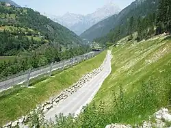 The very first use of rockfall protection embankments dates back to the 1950s. Originally, embankments were mainly made from compacted natural soil and were designed for rather low-impact-energy events.[3] Most often, embankments were trapezoidal in cross-sectional shape, some-times with a rockery facing.[4] Ground-reinforced embankments were developed in the 1980s in view of increasing the height of embankments as well as their face inclination and impact strength.[5]