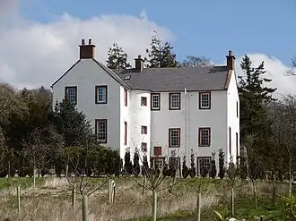 A little over a kilometer away from the house are the remains of Rockhall Mote, a 12th-century motte and bailey castle.[1] Near the mote there was a chapel that was built sometime in the 1200s, when the land was under the possession of William of Glencairn.[1] At the end of the 13th-century, Robert de Brus, 6th Lord of Annandale granted the chapel to the Gisborough Priory.[1]