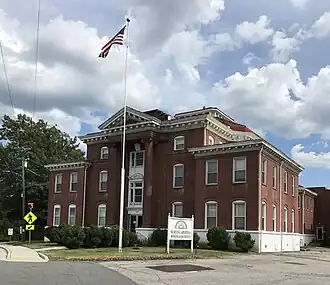 The Rockingham County Courthouse is a historic courthouse located at Wentworth, Rockingham County, North Carolina. It was designed by Frank P. Milburn and built in 1907. It is a Classical Revival-style red brick building that consists of a three-story hipped roofed main block flanked by later added (at two separate times) two-story flat roofed wings. It features a low and broad polygonal cupola atop the Spanish red tile roof.[2] The 1907 courthouse, listed on the National Register of Historic Places in 1979, now houses the Museum and Archives of Rockingham County.