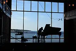Since the first festival in 1981, Rockport Music's concerts were hosted by the Rockport Art Association in its Hibbard and Maddocks Galleries. In 2008, under the guidance of Artistic Director David Deveau and the Board of Trustees, preparation began on the site of Rockport Music's new Shalin Liu Performance Center, named for the philanthropist Shalin Liu.[1] The center opened for the summer chamber music festival in June 2010. The new facility provides seating for approximately 330 and features a third-floor reception space complete with a catering kitchen. The facility is in compliance with the American with Disabilities Act. The concert stage, set in front of a two-story window overlooking Rockport's Sandy Bay, is visible from ground level and balcony seating.[2]