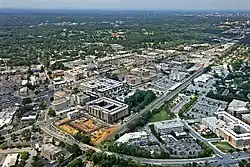 The mid-20th century saw substantial growth in Rockville, especially with the annexation of the Twinbrook subdivision in 1949, which added hundreds of new homes and thousands of new residents to the city. In 1954, Congressional Airport closed, and its land was sold to developers to build residences and a commercial shopping center.[15] The shopping center, named Congressional Plaza, opened in 1958.[16] These new areas provided affordable housing and grew quickly with young families eager to start their lives following World War II.