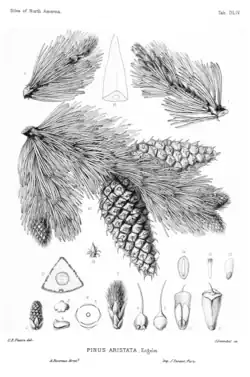 - ^ Ravenscroft, Edward (1884). "35: Pinus aristata". The Pinetum Britannicum : A Descriptive Account of Hardy Coniferous Trees Cultivated in Great Britain (in Latin and English). Edinburgh ; London: W. Blackwood & Sons : E. Ravenscroft. Retrieved 22 July 2024.