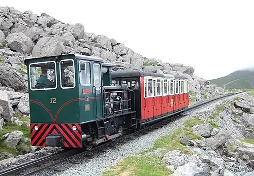 The line starts in the valley bottom at Llanberis at an altitude of 353 ft (108 m), Rocky Valley Halt stands at 2,330 ft (710 m).The summit station stands at 3,493 feet (1,065 m), 68 feet (21 metres) below the summit of the mountain.