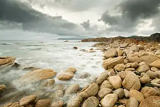 A rocky shore is an intertidal area of seacoasts where solid rock predominates. Rocky shores are biologically rich environments, and are a useful "natural laboratory" for studying intertidal ecology and other biological processes. Due to their high accessibility, they have been well studied for a long time and their species are well known.[1][2]