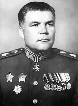 Rodion Yakovlevich Malinovsky (Russian: Родио́н Я́ковлевич Малино́вский; Ukrainian: Родіо́н Я́кович Малино́вський, romanizedRodion Yakovych Malynovskyi; 23 November [O.S. 11 November] 1898 – 31 March 1967) was a Soviet military commander and Marshal of the Soviet Union. He served as Minister of Defence of the Soviet Union from 1957 to 1967, during which he oversaw the strengthening of the Soviet Army.