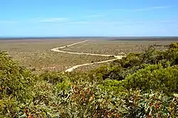 The Roe Plains are predominantly marine dunes on a coastal plain.[1] The plains are bounded on the south by the Great Australian Bight. They are bounded on the west by the Baxter Cliffs, which extend for nearly 200 km along the shore of the bight, and on the east by the Bunda Cliffs, which extend eastwards from near Eucla for 220 km along the coast of South Australia.