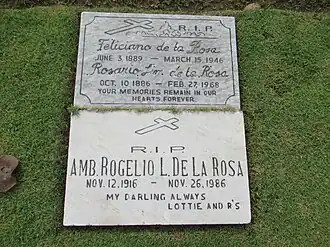 - ^ "Rogelio de la Rosa - Philippine Senate Website". Senate of the Philippines. Archived from the original on November 7, 2007. Retrieved October 31, 2007.