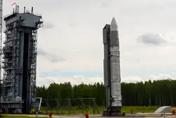 Rokot (Russian: Рокот meaning Rumble or Boom), also transliterated Rockot, was a Soviet Union (later Russian) space launch vehicle that was capable of launching a payload of 1,950 kilograms (4,300 lb) into a 200-kilometre (120 mi) Earth orbit with 63° inclination. It was based on the UR-100N (SS-19 Stiletto) intercontinental ballistic missile (ICBM), supplied and operated by Khrunichev State Research and Production Space Center. The first launches started in the 1990s from Baikonur Cosmodrome out of a silo. Later commercial launches commenced from Plesetsk Cosmodrome using a launch ramp specially rebuilt from one for the Kosmos-3M launch vehicle. The cost of the launcher itself was about US$15 million in 1999;[7][8] The contract with European Space Agency (ESA) for launching Swarm in September 2013 was worth €27.1 million (US$36 million).[9]