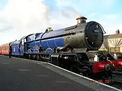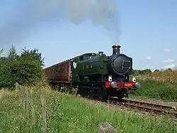 Until 2019 there were no steam locomotives based on the line, with the Mid-Norfolk hiring steam locomotives based on other railways for use during the Summer season and most remaining services utilising diesel traction. Sentinel 4wVBT 9596 "George"[9][10] and Robert Stephenson & Hawthorns 0-4-0ST 7818 "Castle Donington Power Station No. 2"[11] are stored in the former yard at Yaxham, independently of the MNR. Great Western Railway 0-6-0 PT '9466' was a regular visitor to the line, but wasn't based at Dereham.