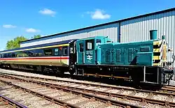 The main restoration depot is at Dereham. The three-road shed, built with a £100,000 European Union (EU) grant, has space to accommodate nine standard length coaches, steam or diesel locomotives.[6] Additional secure storage sidings have been built near Kimberley, relating to a main-line contract.[7] With the Mid-Norfolk being connected to the main Breckland secondary main line, the company's maintenance facilities are also employed for the regional Network Rail Rail Head Treatment Train (RHTT) during the autumn period.[8]