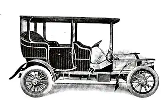 The engine was made of two separately cast two-cylinder units which were common with the two-cylinder 10 hp and six-cylinder 30 hp types sharing their bore of 4 in (102 mm) and stroke of 5 in (127 mm). It is water-cooled and of 4118 cc capacity with overhead inlet and side exhaust valves Early cars had a high-tension ignition system using pre-charged accumulators, a trembler and a coil ignition system; on later cars this was supplemented by a magneto which could be used as an alternative. As the lighting supplied uses oil for the side and tail and acetylene for the headlights, there is no other drain on the accumulators, which need to be recharged between outings. The power output is 20 bhp (15 kW) at 1000 rpm.[5] The engine speed is controlled by a governor that can be over-ridden by the pedal-controlled accelerator. A three-speed gearbox was fitted at first, later changed to four-speed with the introduction of the Light 20 and subsequently fitted to all cars, connected to the engine via a short shaft and a leather-lined cone clutch was used. On the four-speed type, third gear is direct and fourth speed an overdrive ratio.